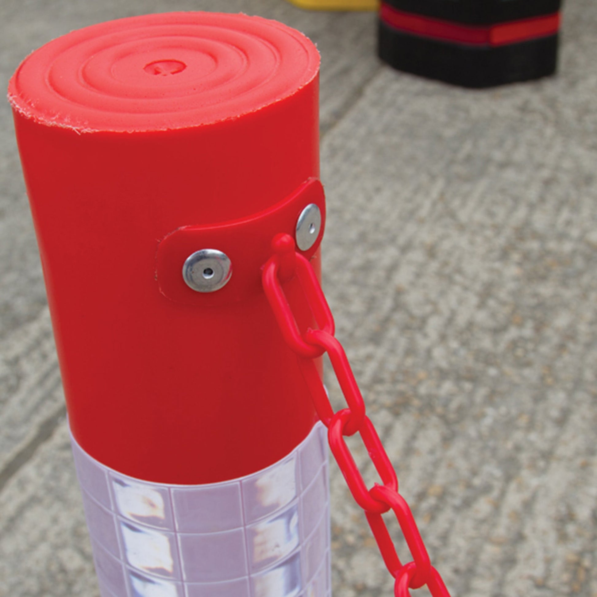 Moulded post with integral shock cord device allows post to revert to upright after impact. Comes complete with conforming Sealbrite™ Sleeve. Ideal for delineating traffic in areas such as airports, car parks, docksides etc.