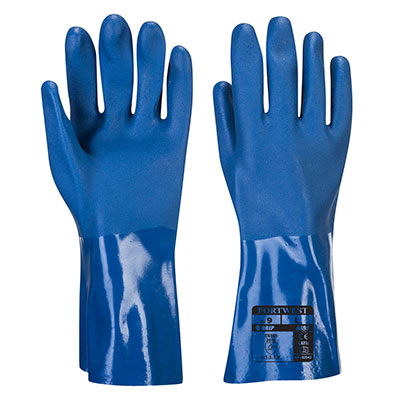 PVC gauntlet with excellent resistance to animal fats and fish oils. Sandy palm finish for a secure grip and better abrasion resistance. Seamless liner ensures comfort and flexibility.